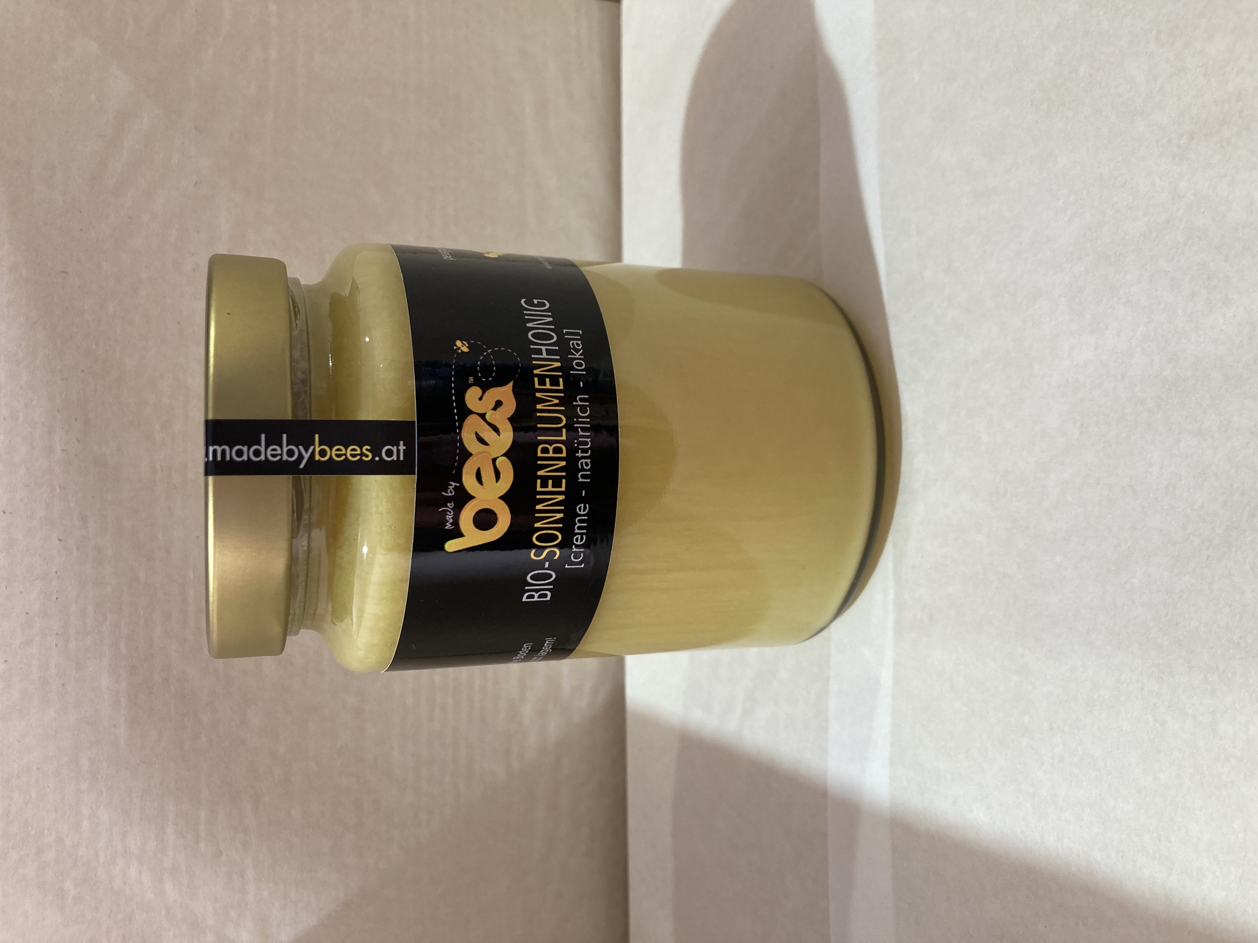 Kommt von unseren Bienenständen in Niederösterreich. Sonnenblumenhonig kristallisiert sehr schnell, deswegen verarbeiten wir ihn zu Cremehonig